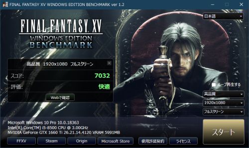 ファイナルファンタジーXV (FF15) Windows Edition ベンチマーク