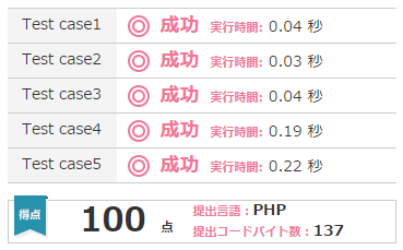 ネット上にPHPの解答例みたいなのがなかったので、置いておきたいです(笑)