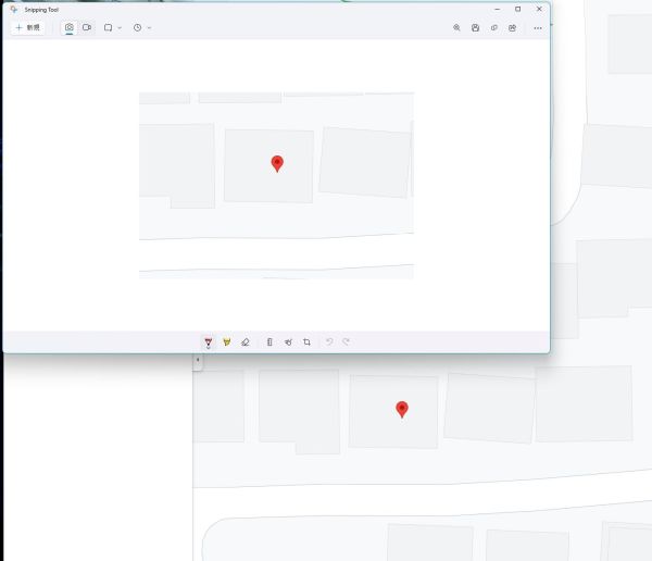google mapで自宅を検索し、拡大表示します。それをWindowsのSnipping Toolで切り取ります。