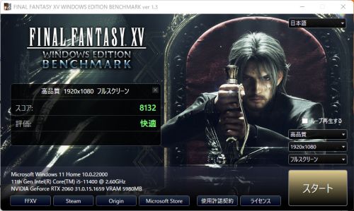 i5-11400 + RTX 2060 Win11(1920x1080 最高品質 フルスクリーン DirectX 11)