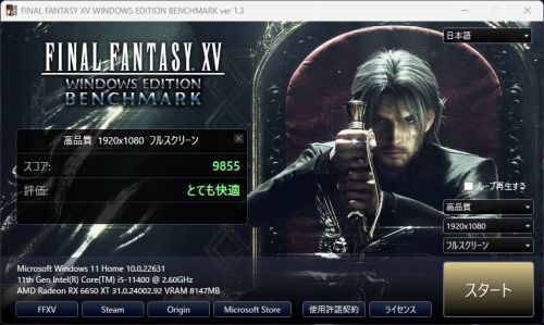 i5-11400 + RX 6650 XT (1920x1080 高品質 フルスクリーン)