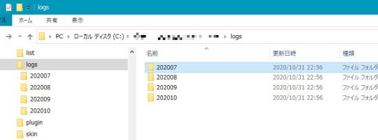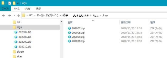 ちなみに下の画面の状態で、左側ツリーのlogsをマウスで掴んで「全解凍」にドロップすると元の状態に戻ります。